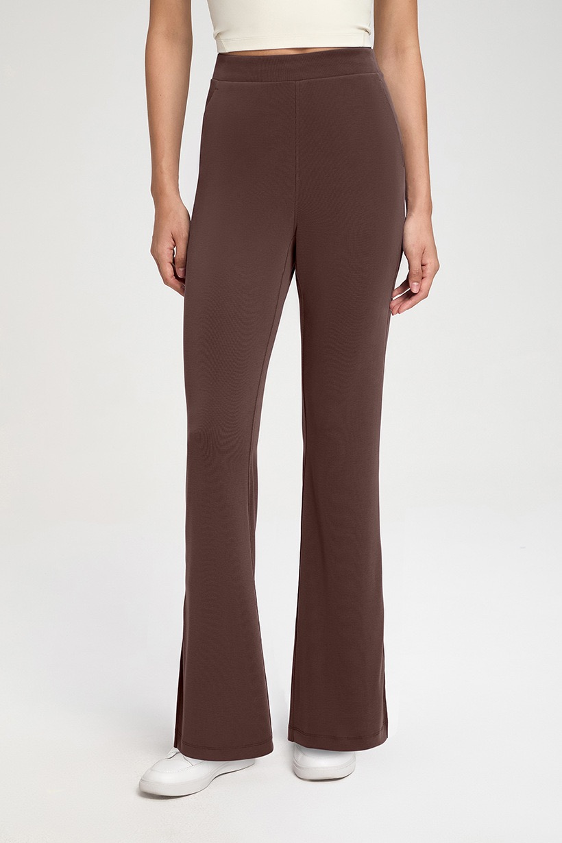 Women's High - Waisted Slate Blue Flare Yoga Pants with Side Slit, Bootcut Leggings