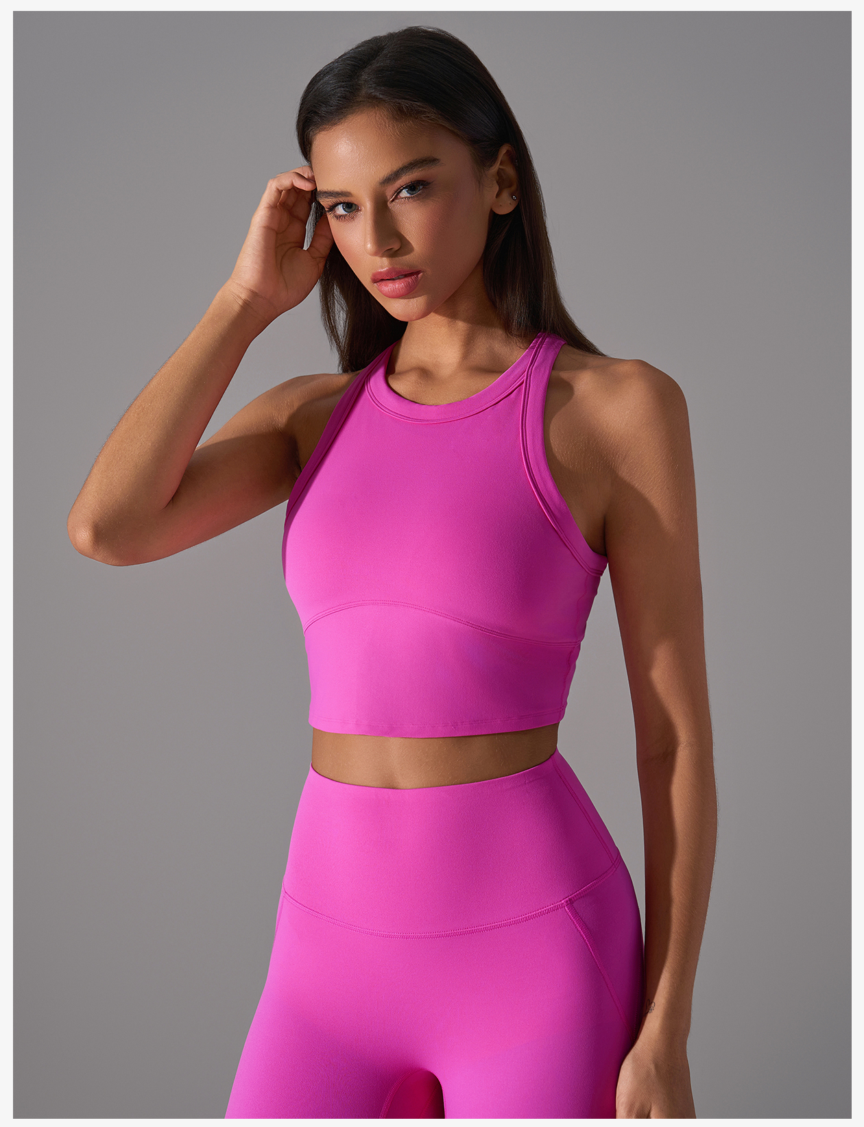 Source Factory Focus on Quality Item No.: D25030 Fabric Material: Naked - feeling Shaping Fabric Composition: 79% Nylon + 21% Spandex Applicable Scenarios: Running, yoga, Pilates, jogging, leisure, streetwear, and any intensity of exercise.