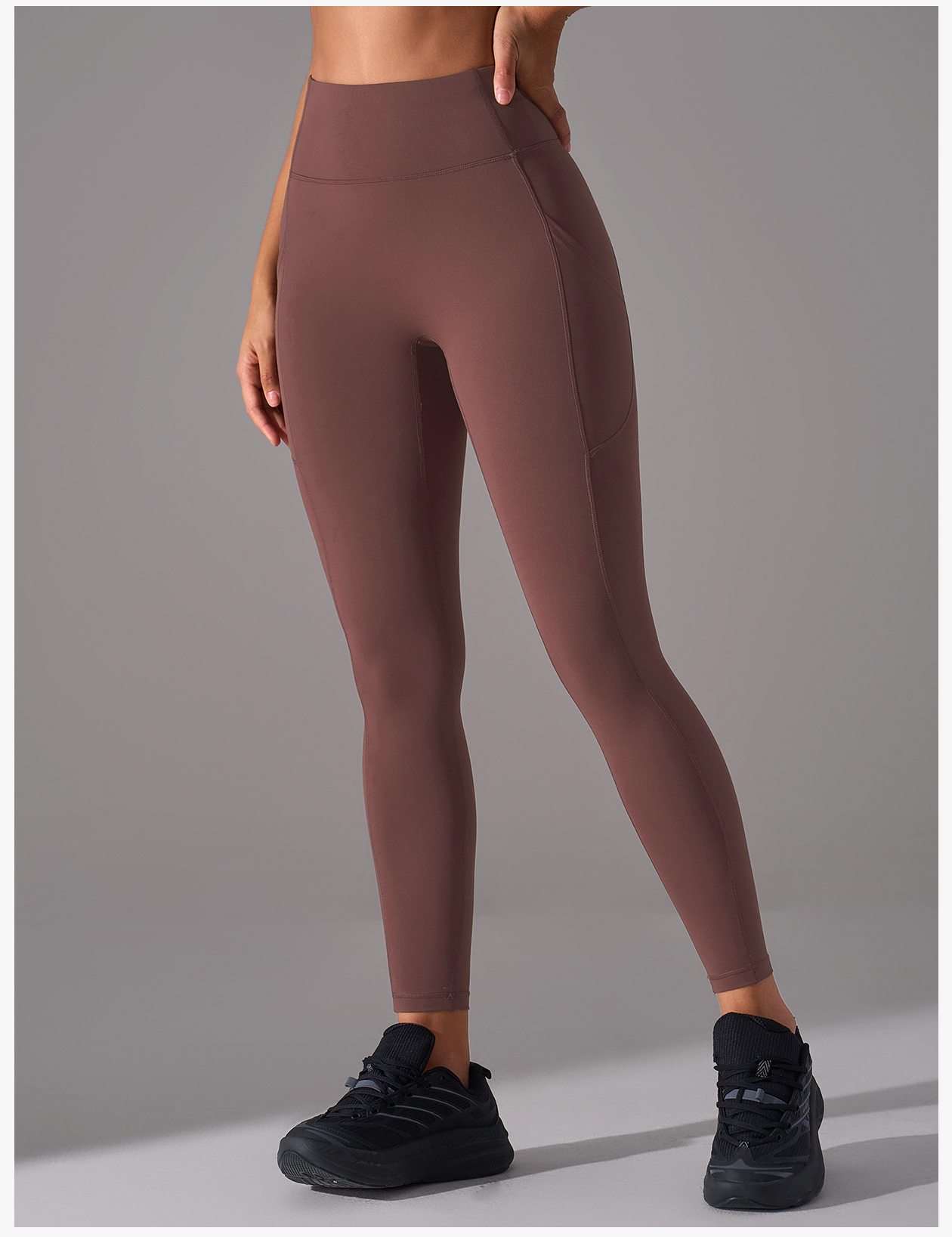 Women's Brown High-Waisted Tight Yoga Leggings, Workout Athletic Pants with Pockets
