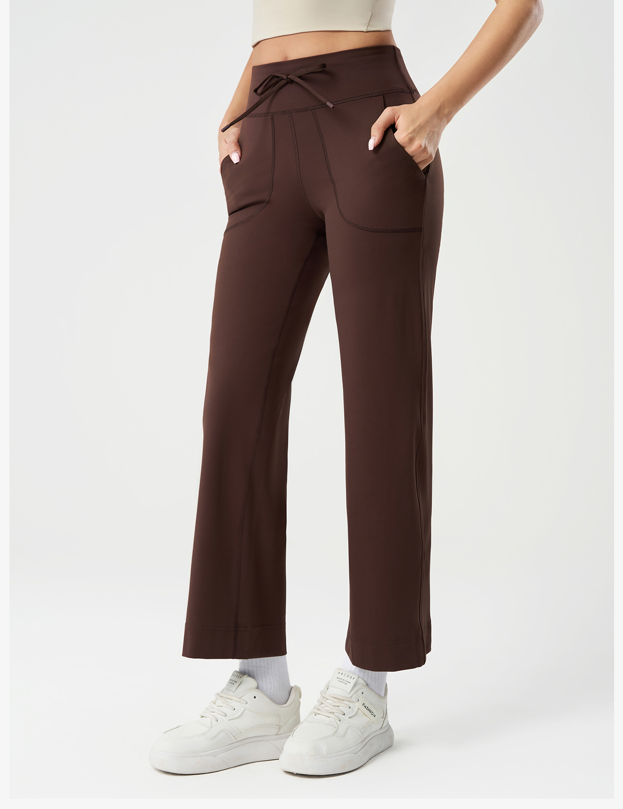 Women's High-Waisted Wide Leg Yoga Pants with Pockets, Drawstring Tummy Control Workout Pants for Gym, Running, Lounge and Casual Wear