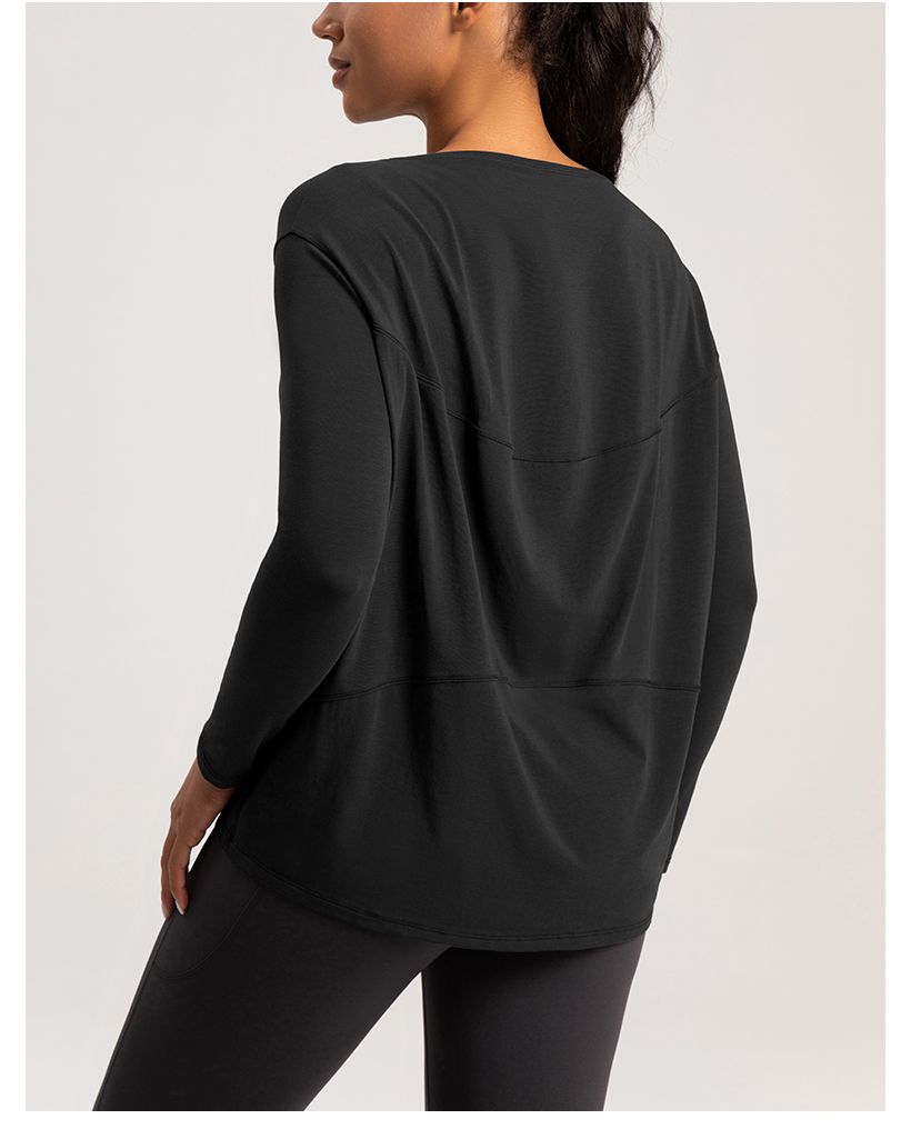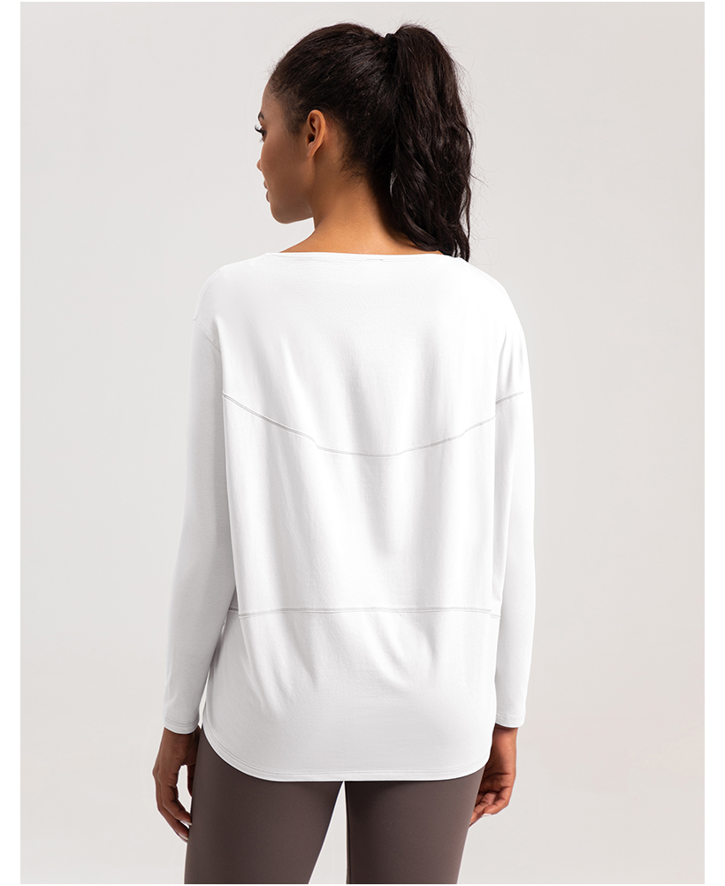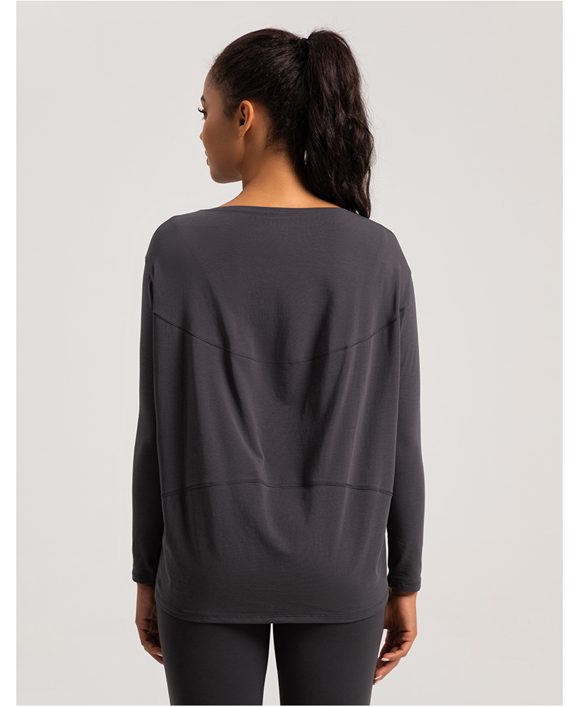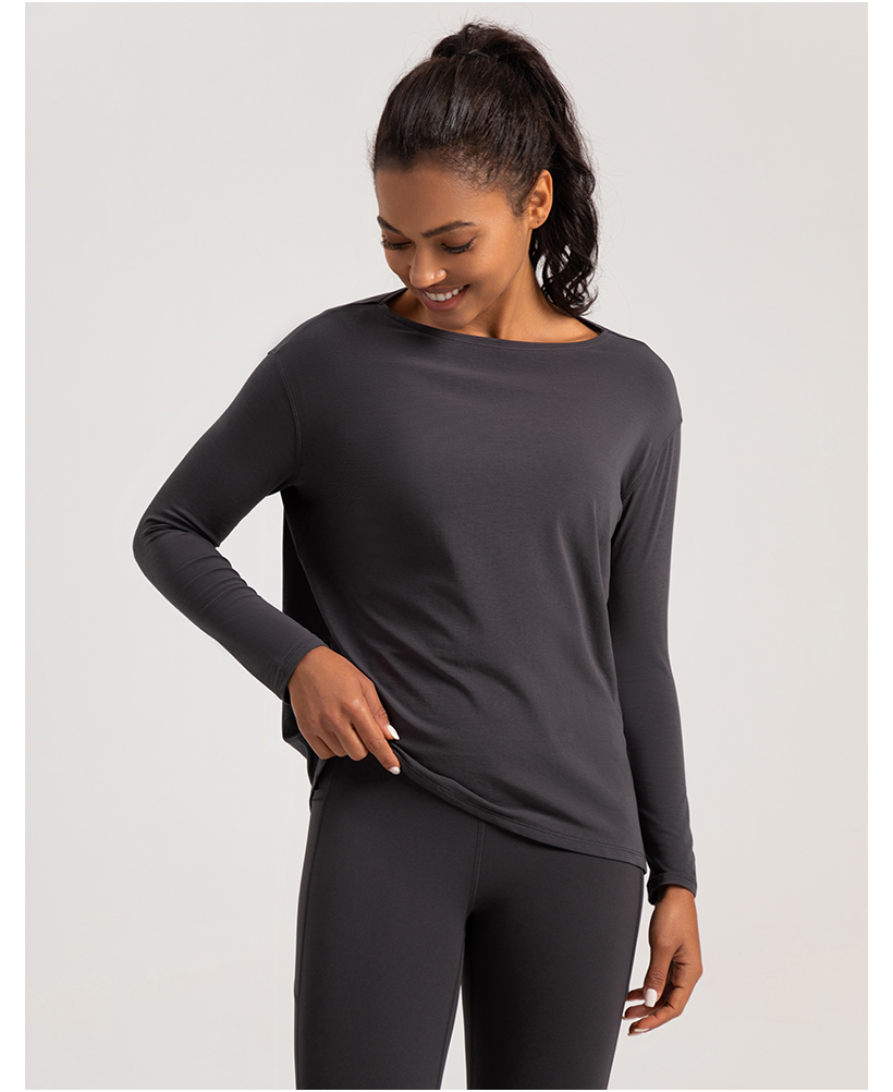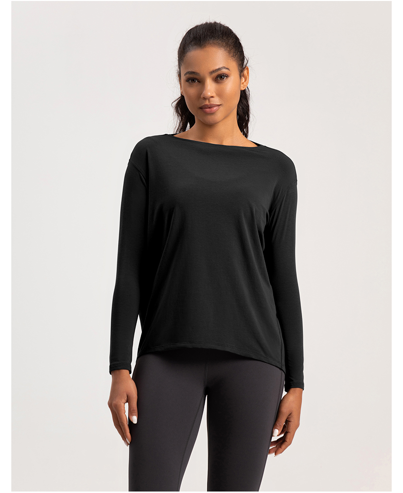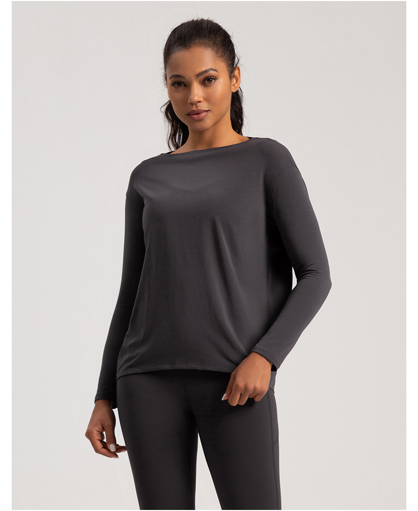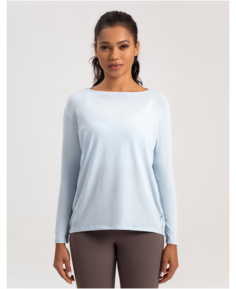Women's Light Blue Boat Neck Long Sleeve Yoga Top, Loose Fit Workout & Lounge Shirt