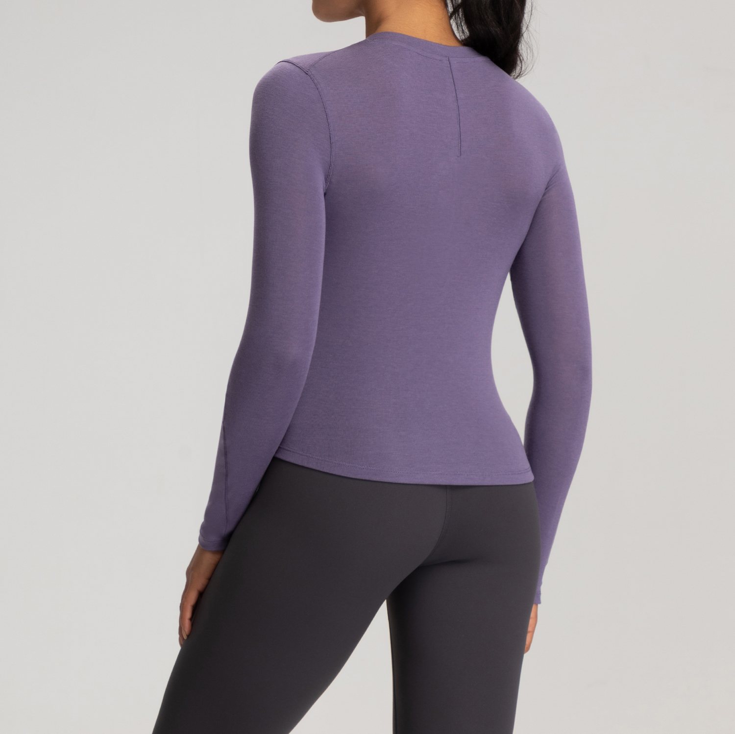 Women's Long - Sleeve Crew Neck Yoga Top, Slim Fit Athletic Workout Shirt