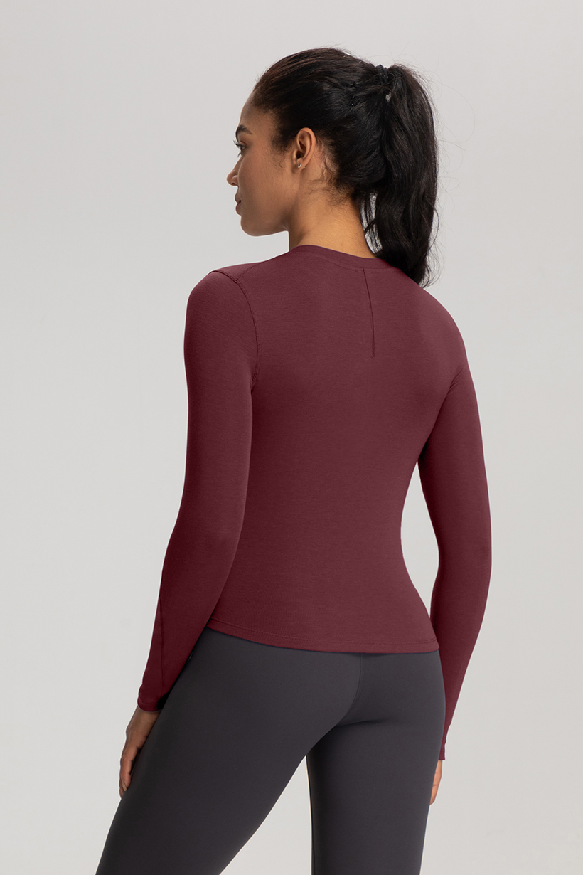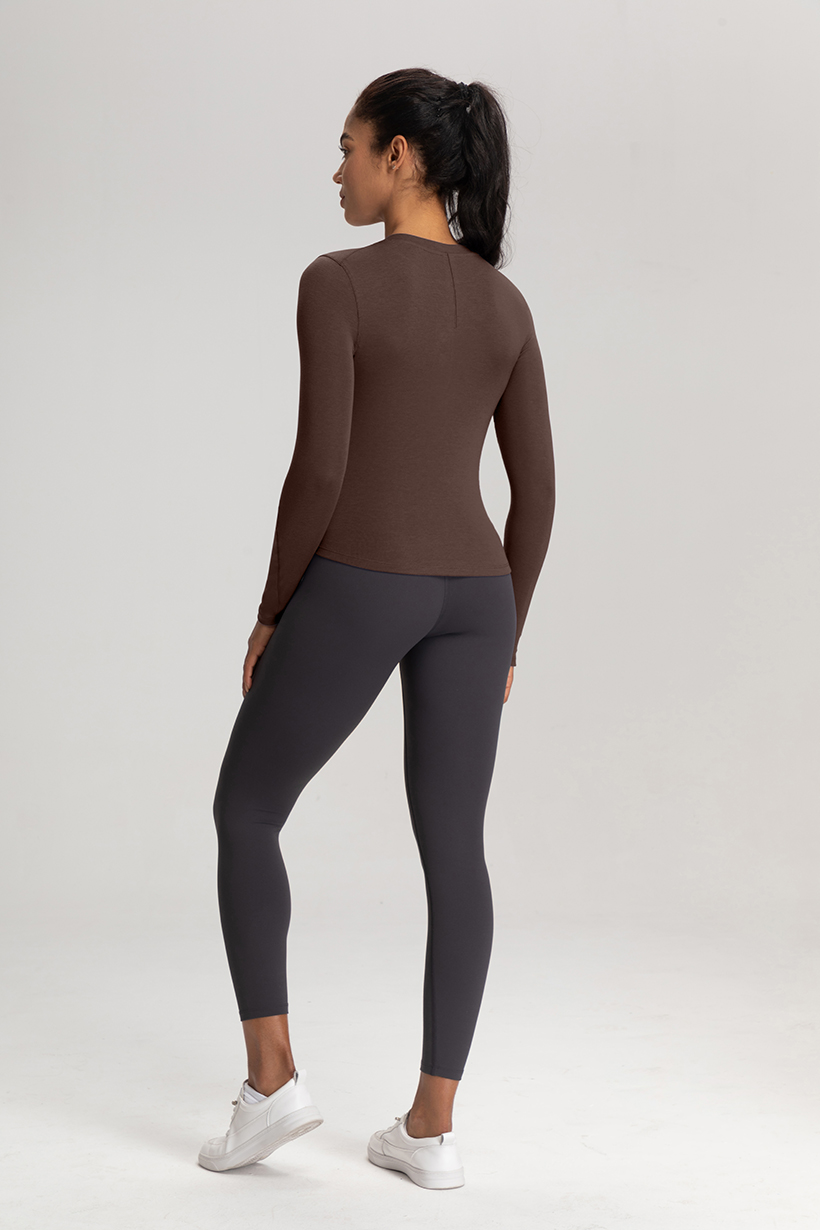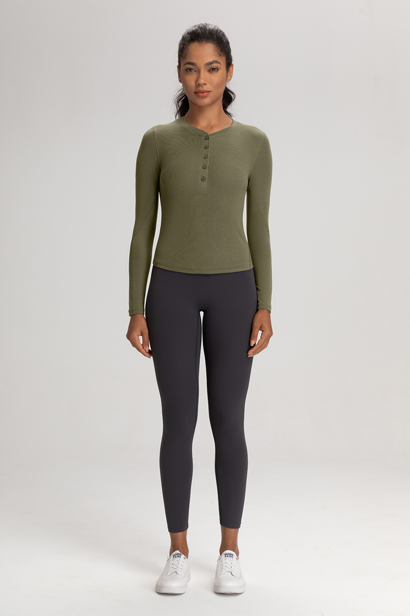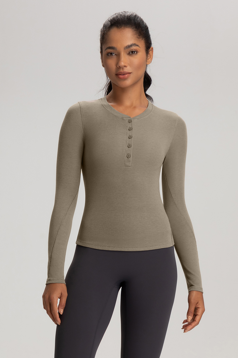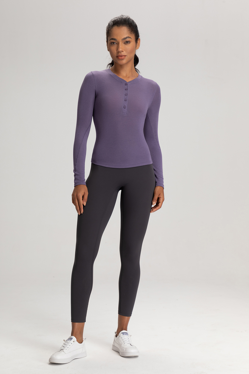 Women's Long - Sleeve Henley Neck Yoga Top, Slim Fit Athletic Workout Shirt