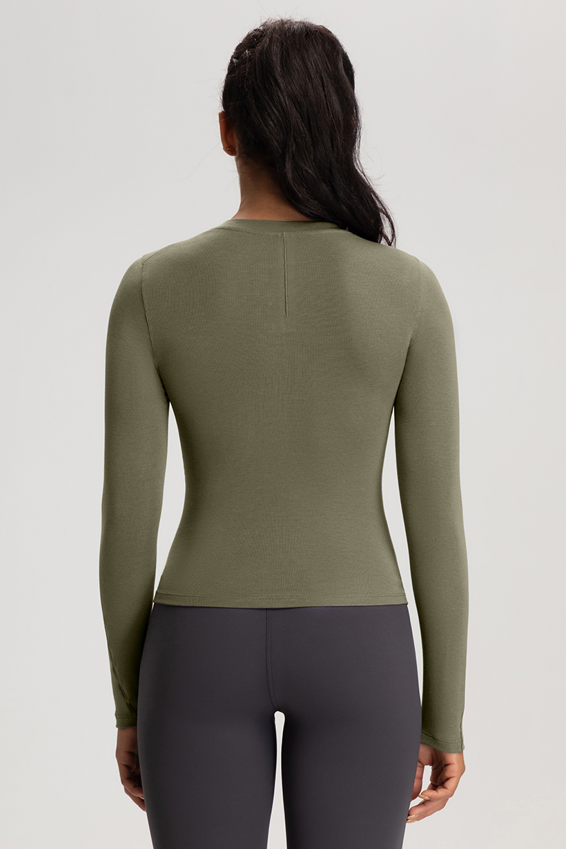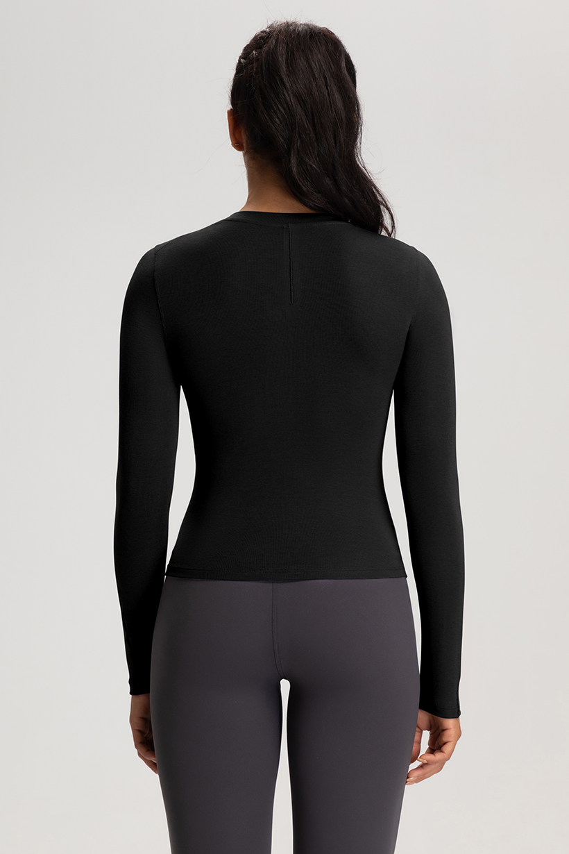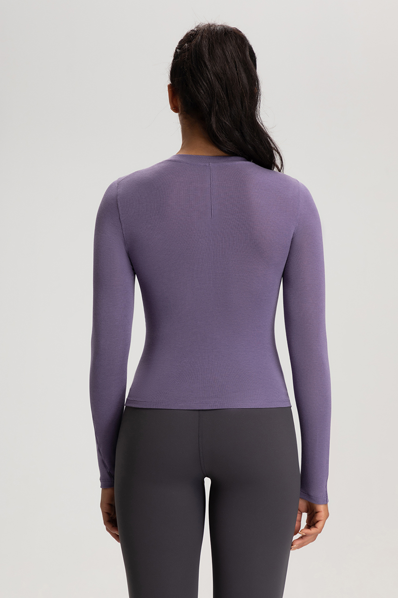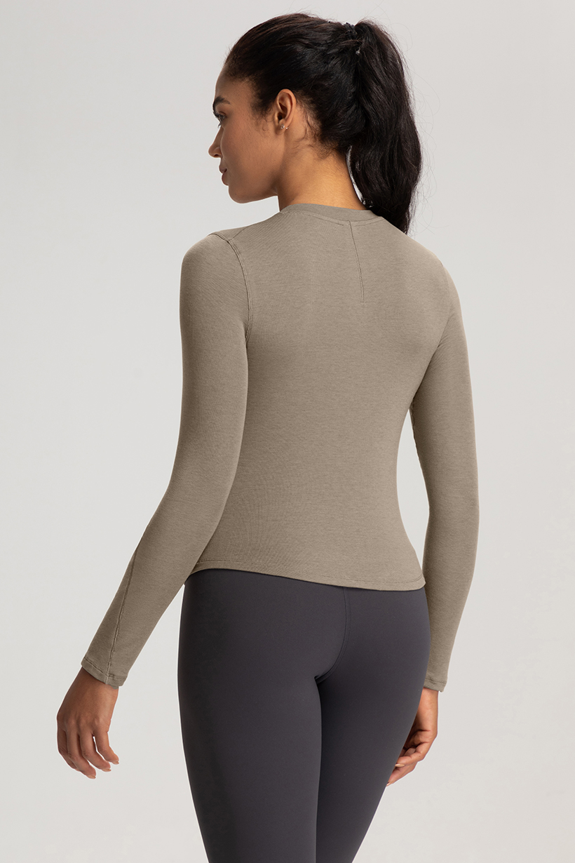Women's Long - Sleeve Henley Neck Yoga Top, Slim Fit Athletic Workout Shirt
