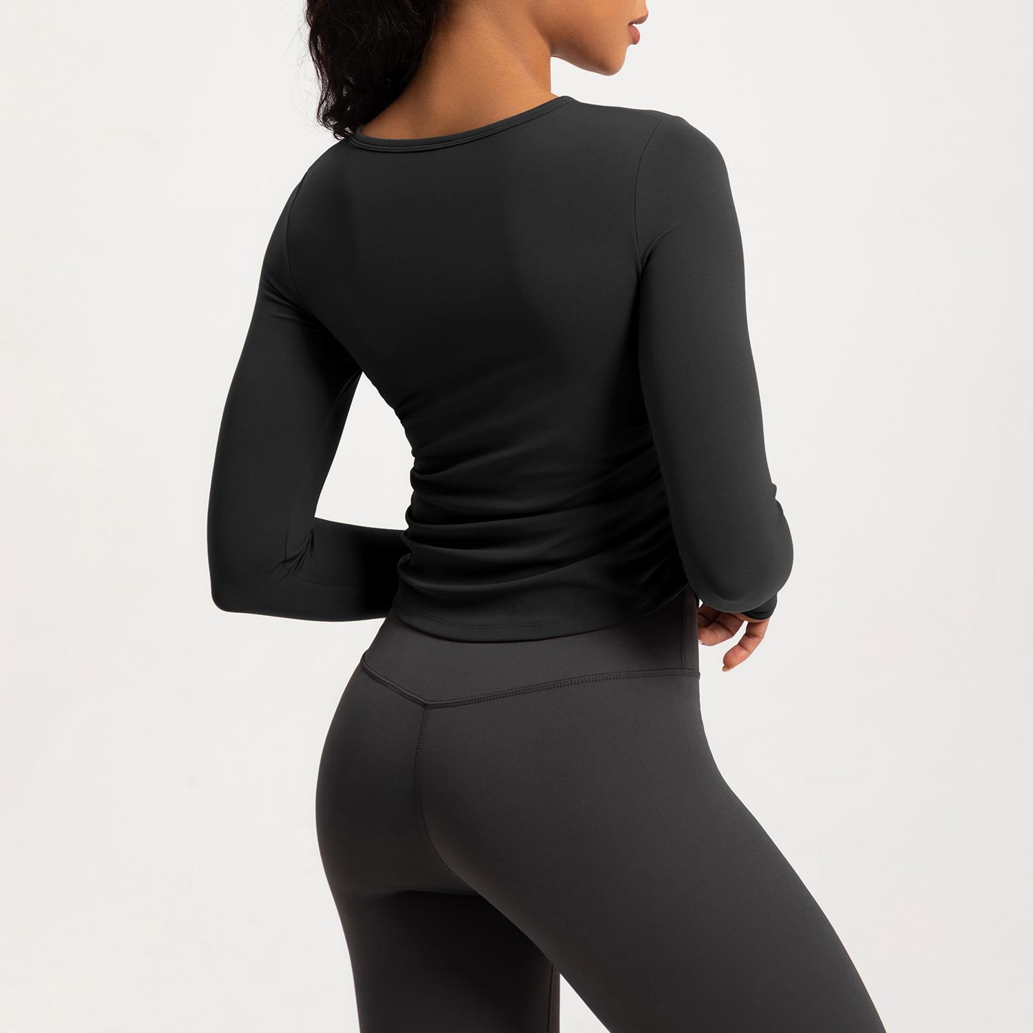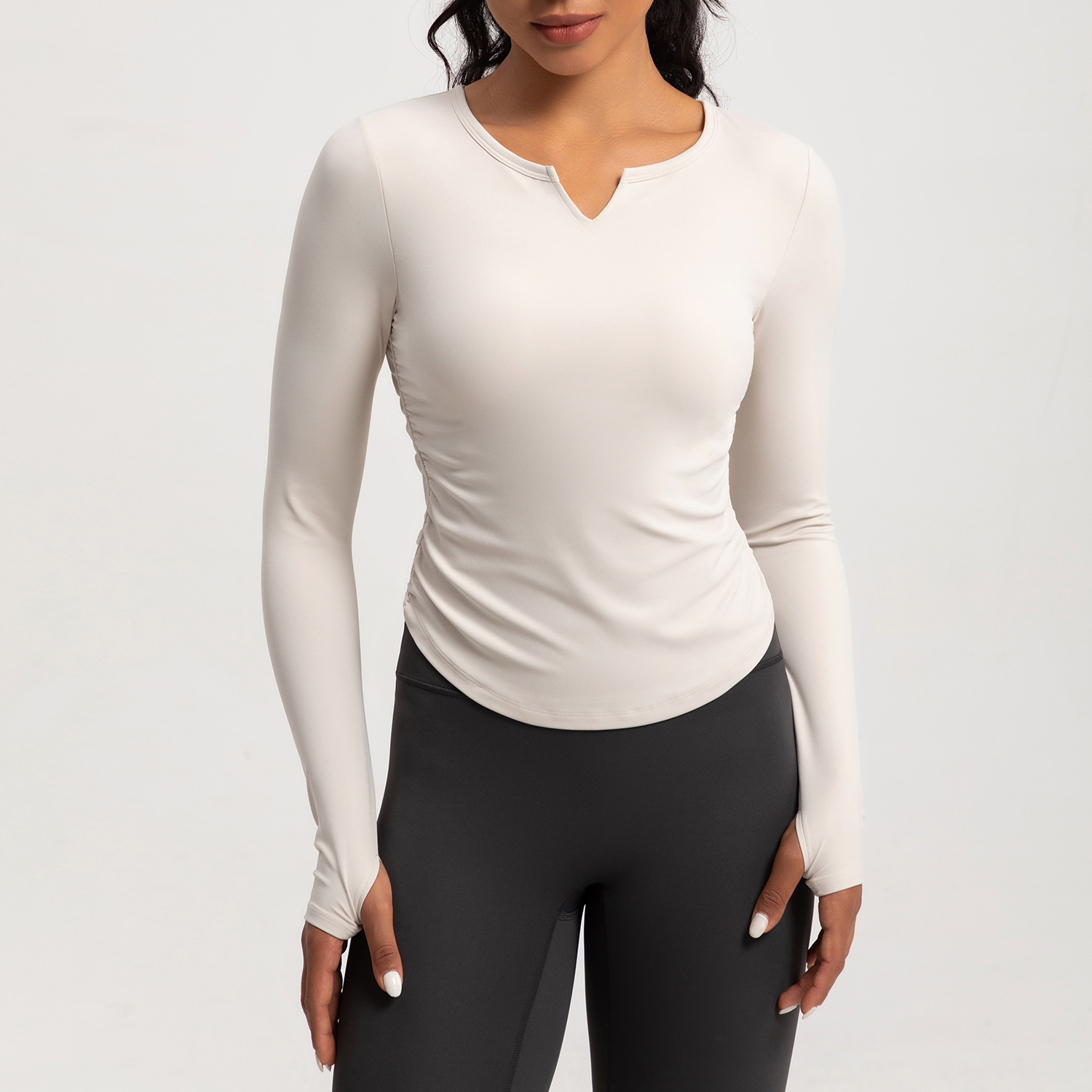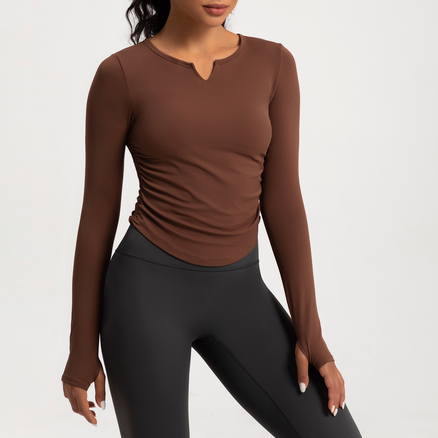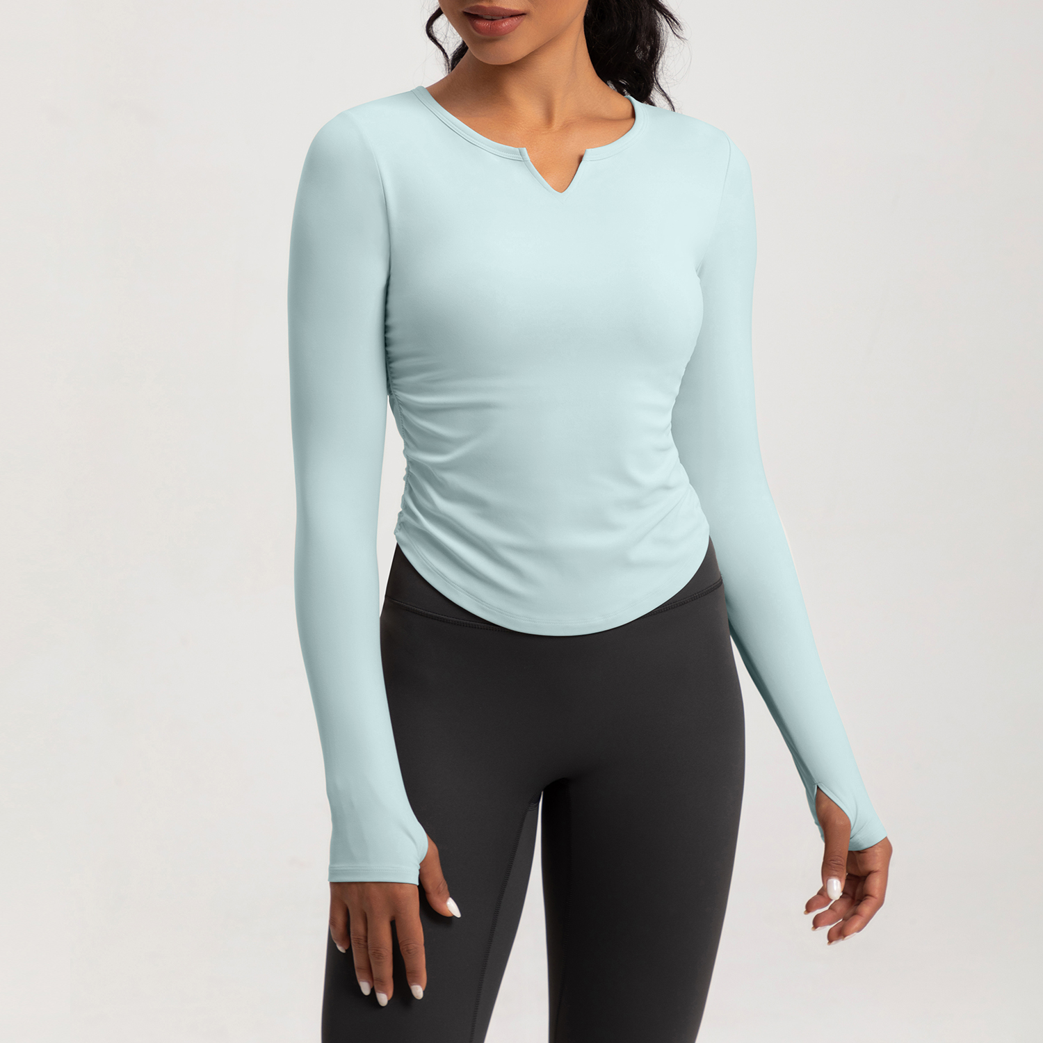 Women's Long - Sleeve V - Neck Ruched Yoga Top, Slim Fit Workout Shirt