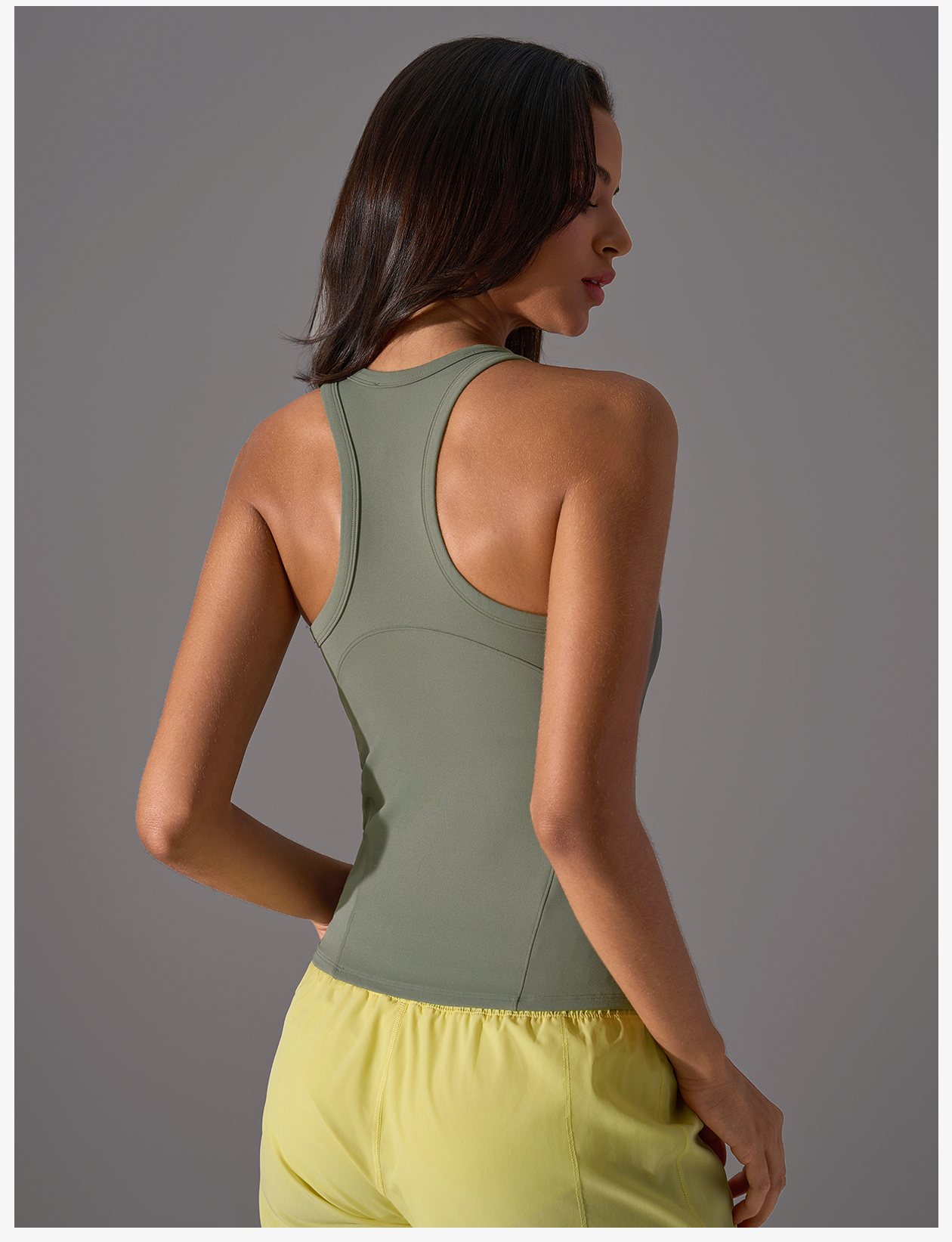 Women's Olive Green Racerback Tank Top - Slim Fit Yoga & Workout Shirt for Fitness