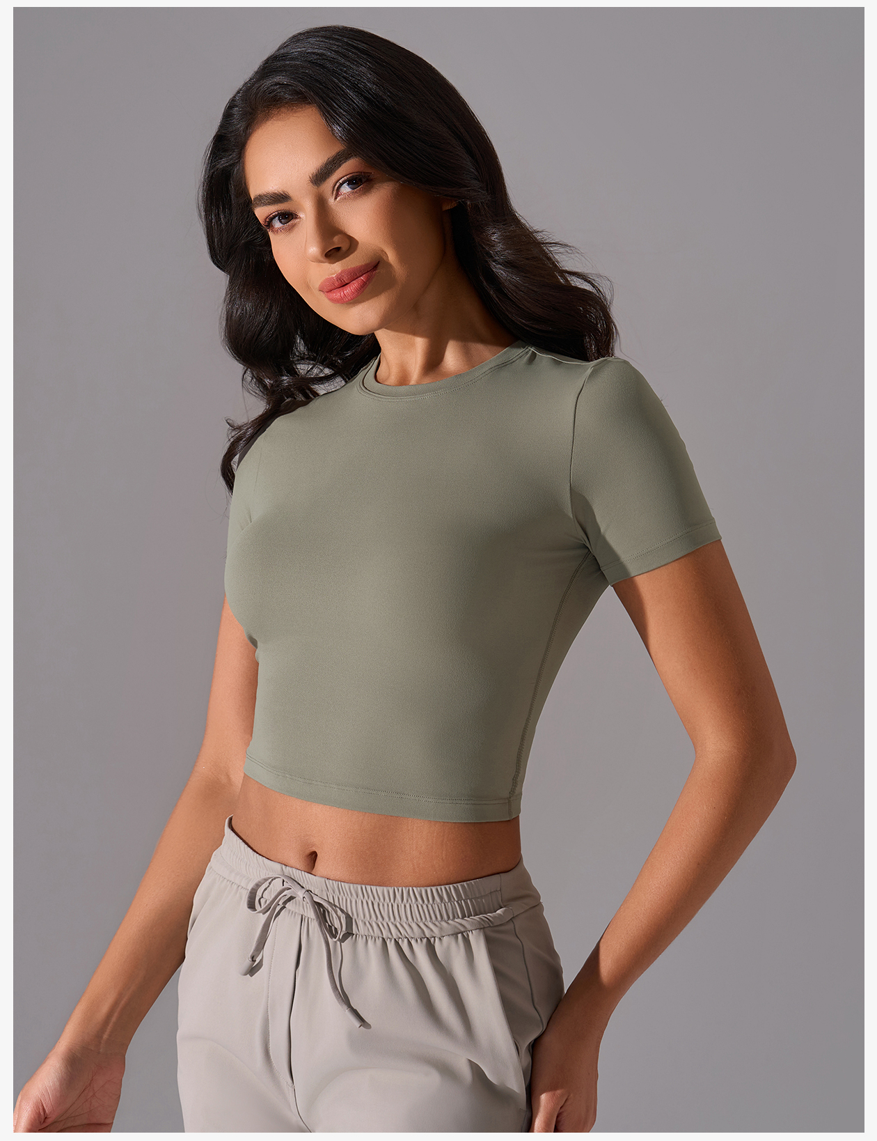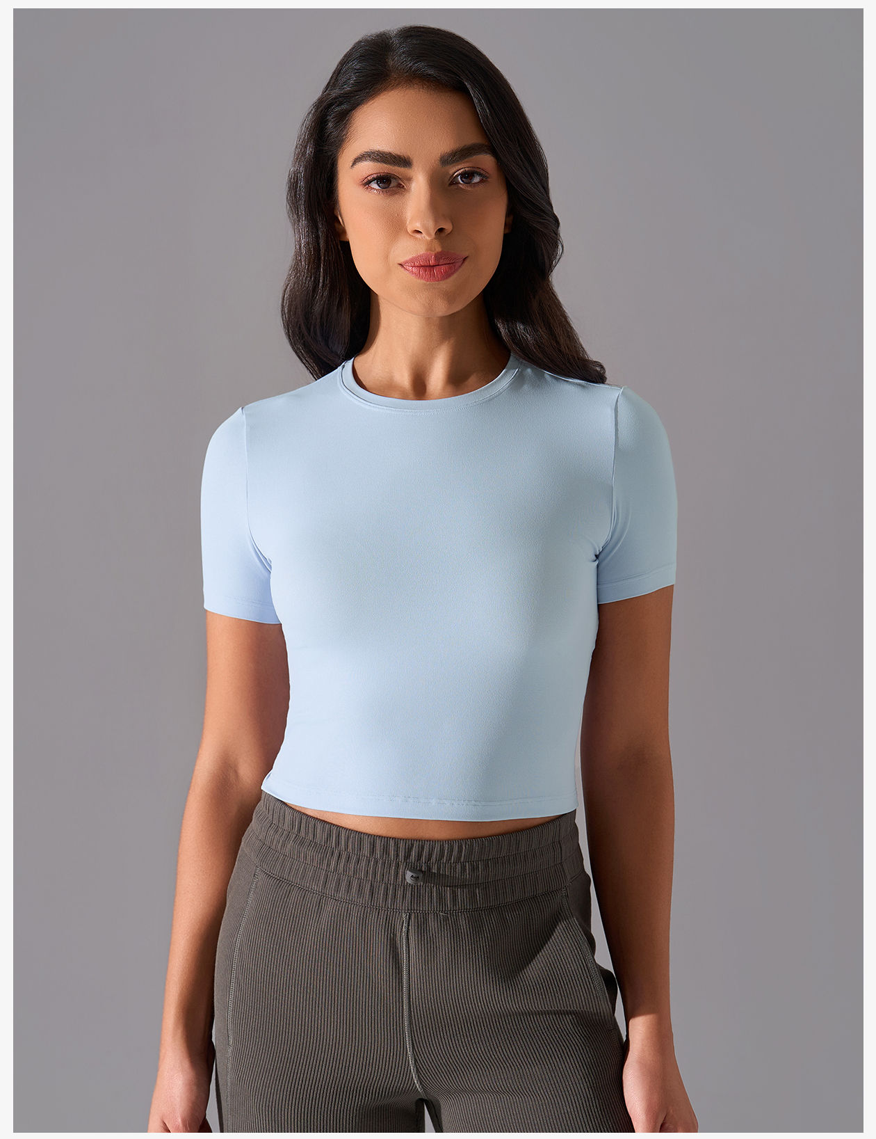 Women's Short Sleeve Cropped Top, Form - fitting Workout Shirt for Yoga, Gym and Casual Wear