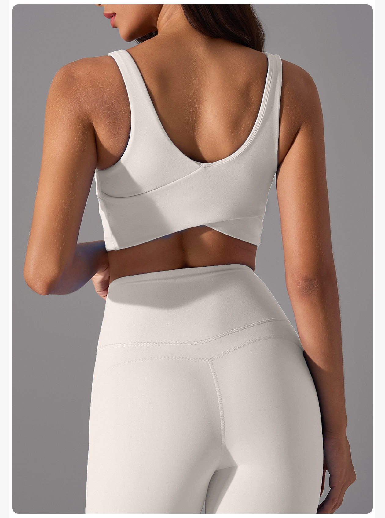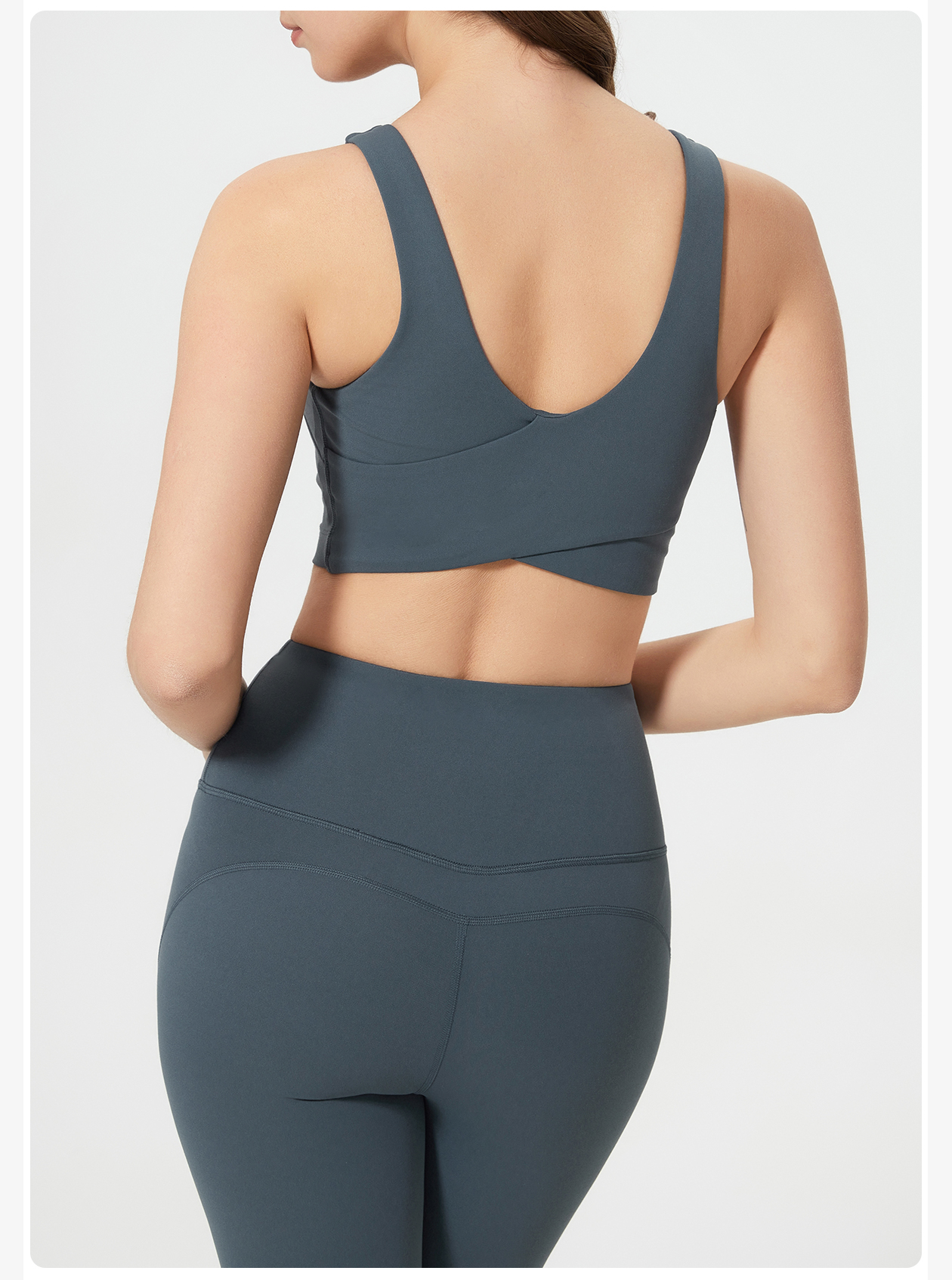 Source Factory Focus on Quality Item No.: D25031 + D25034 Fabric Name: Naked - feeling Shaping Fabric Composition: 79% Nylon + 21% Spandex With Removable Pads: Yes Applicable Scenarios: Running, yoga, Pilates, jogging, leisure, streetwear, and any intensity of exercise.